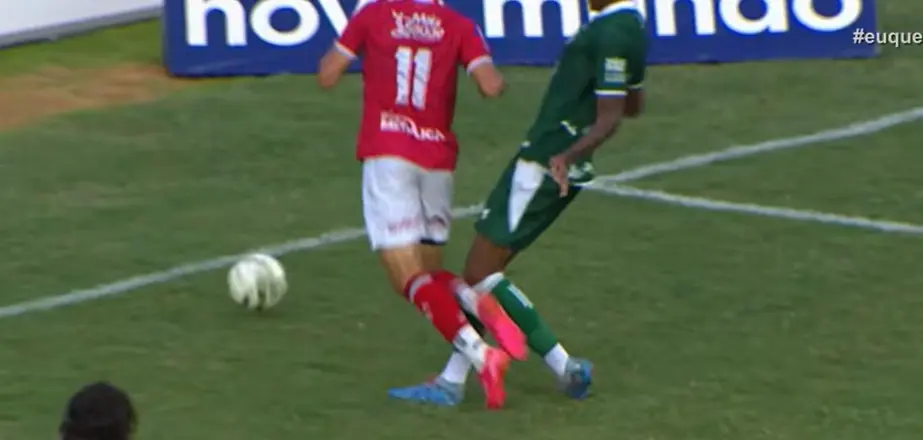 “Para mim, avaliando esse lance, não tem um toque do defensor no atacante, não tem. Ele põe o pé no chão primeiro e o jogador atacante que dá um toque mais longo, já vê que não vai alcançar a bola e se joga. Cartão amarelo por simulação. Para nós, não tem nada a marcar a não ser o tiro livre indireto pela simulação”, afirmou Júlio César Motta.
